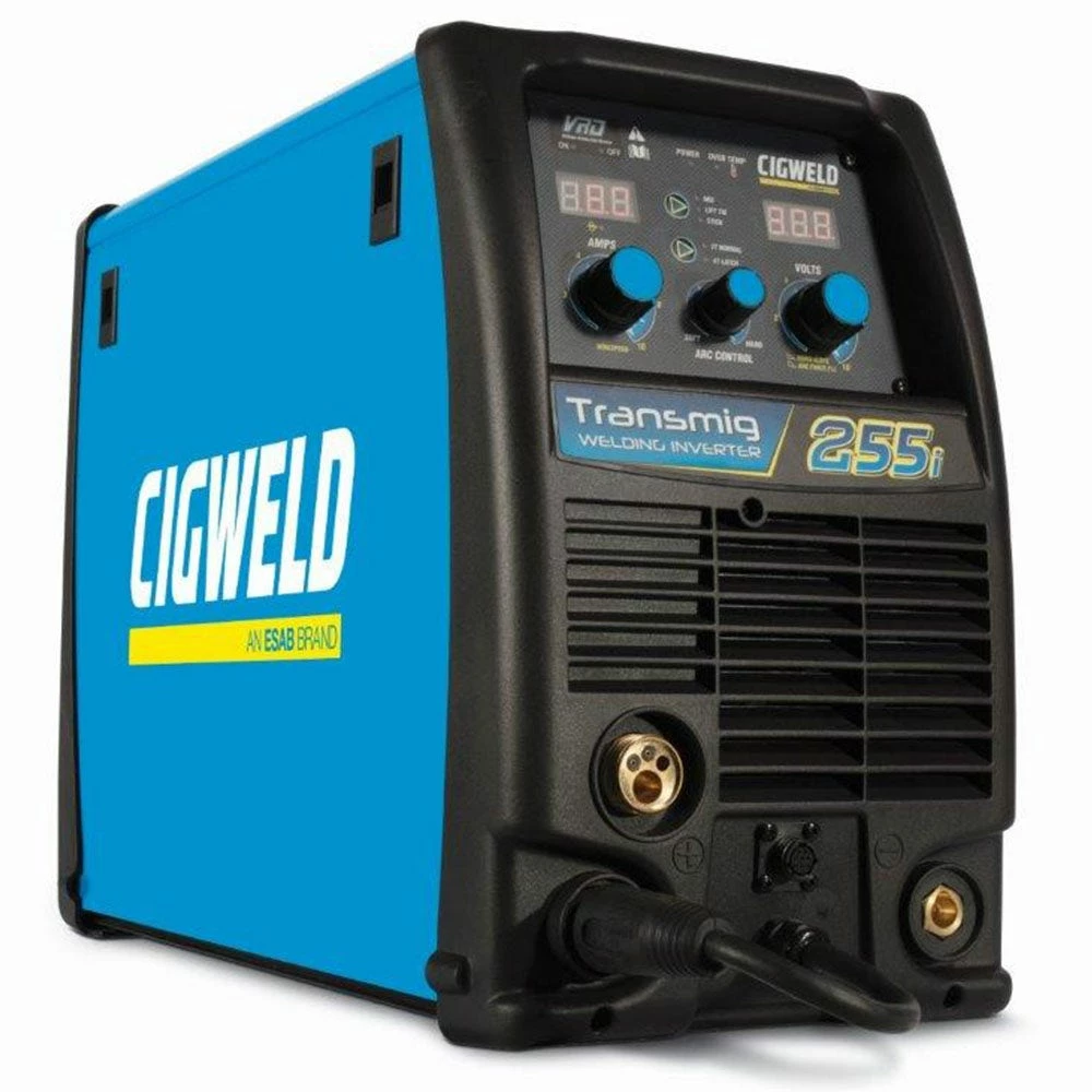 The CIGWELD Transmig 255i is a self contained single phase multiprocess welding inverter with digital voltage and amperage meters, that is capable of performing MIG (GMAW/FCAW), Stick (MMAW) and Lift TIG (GTAW) welding processes. It is ideal for welding plate thicknesses between 0.8mm and 12mm with a range of wires from 0.6mm-1.2mm (solid), and has the added benefit of running the Tweco SGT250 Spool Gun for the convenience of your precision aluminium work.