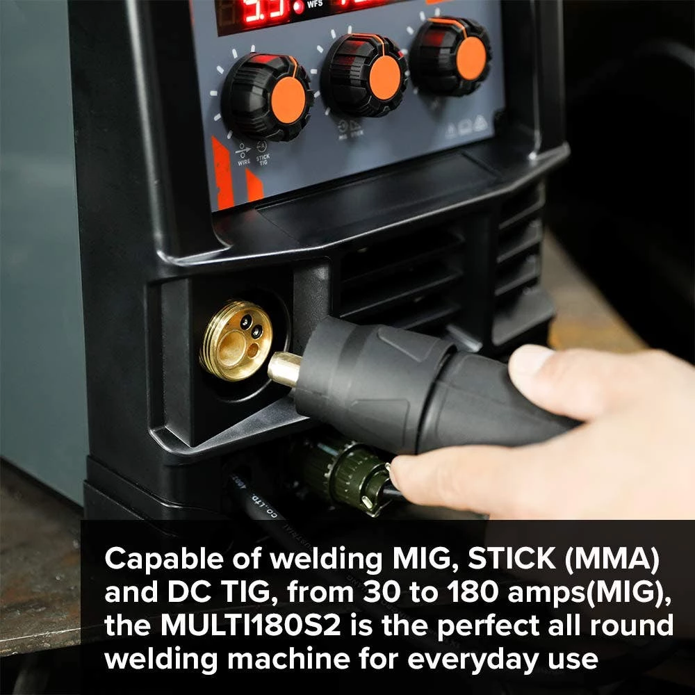 - Capable of welding MIG, STICK (MMA) and DC TIG, from 30 to 180 amps(MIG), the MULTI180S2 is the perfect all round welding machine for everyday use.