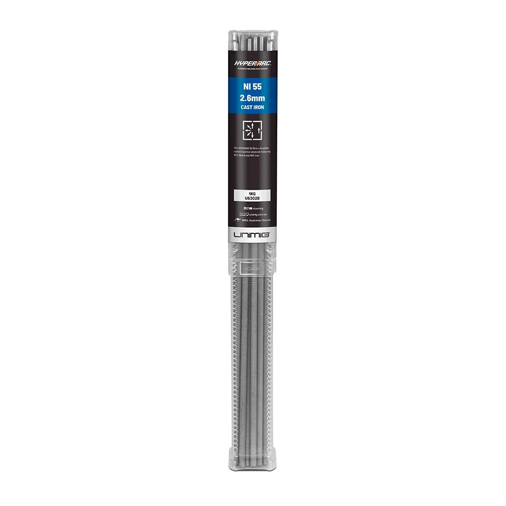 The HYPERARC Ni 55 is a Graphite coated Cast Iron electrode featuring 55% Nickel and 45% Iron.