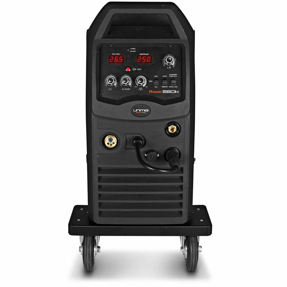 The RAZOR™ 250 Compact is a powerful workshop machine with MIG, TIG and STICK welding functions. Built with solid construction, this machine is designed to withstand the toughest conditions. The RAZOR™ 250 Compact is also Spool Gun and Push-Pull Gun ready, providing MIG welding capabilities across every spool size.
