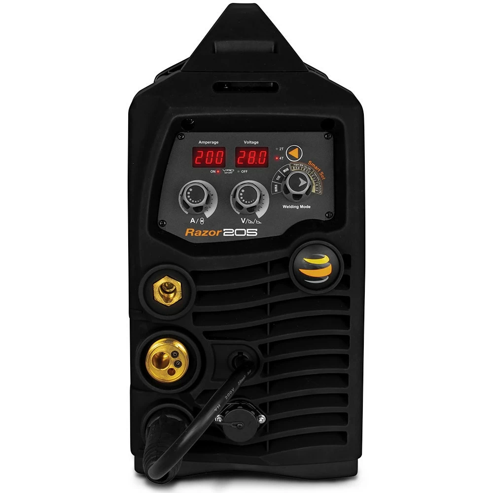 The RAZOR™ 205 SMART SET™ is one of the easiest multi-process welders available, offering MIG, TIG and STICK welding functions. The SMART SET™ Synergic MIG technology takes the guesswork out of MIG welding, so you get more done in less time. With the inclusion of a Spool Gun connection and lightweight construction, the RAZOR™ 205 SMART SET™ goes from worksite to workshop with ease.